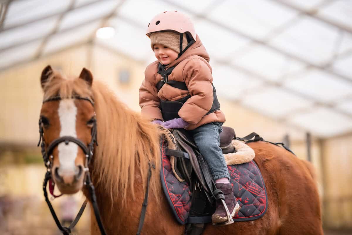 …czyli spacery na końskim grzbiecie to oferta dla najmłodszych jeźdźców. Już 3-4 letnie dzieci mogą spróbować przygody z jazdą konną podczas spaceru na ujeżdżalni lub w terenie.